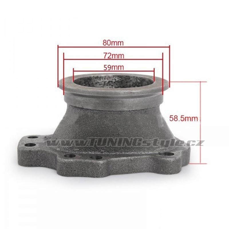 Adaptér downpipe T25/T28/GR25/GT25R/GT28R/GT28RS/GT2871R 8Śrub na 2.5" V-Band Material: litina Pasuje do : Turbo T25, T28, GR25, GT28R, GT28RS, GT2871R     Celý popis