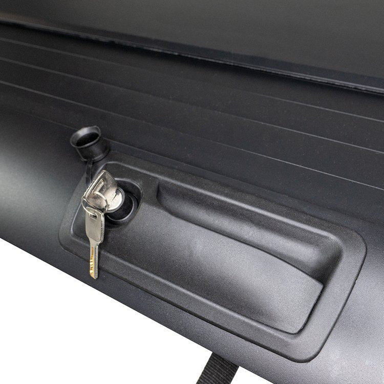 Aluminium bed cover Three different positions of cover Strap for convenient closing of the cover Flat rail adapts to almost all roll bar styles in the market The curtain structure leaves barely no seam between hinges Drain tubes in case of water collection Aluminium brackets, no drilling required The roller can be locked with a key Black powder coated greatly increasing UV resistance Celý popis
