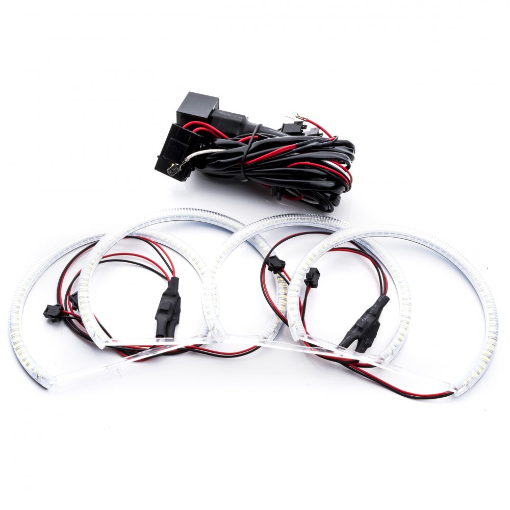 LED světelné kroužky (Angel Eyes) BMW 3 E46 (světlomety bez čočky) (1998-2001) Specifikace: Průměr větších kroužků: Vnitřní průměr 119 mm / Vnější průměr 146 mm Průměr menších kroužků: - Druh kroužků: Diodové Počet diod: LED SMD (4 x - diod) Barva světla: 6000K (studená bílá) Kompatibilita CANbus: Ano, souprava nevyvolává chybové hlášení spálené žárovky Doplňkové informace: Neruší příjem rádia ... Celý popis