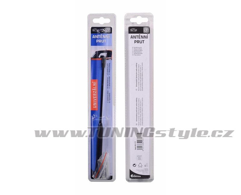 Univerzální anténní prut, určeno pro automobilové antény (příjem rozhlasového signálu ve voze). Součástí balení je řada adaptérů pro různé závity.technická data: délka prutu21 cm vnitřní závitM6 vnější závitM6 (adaptér) vnější závitM5 (adaptér) vnější závitM4,5 (adaptér) barvačerná Celý popis
