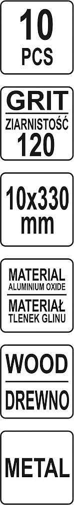 Brusné pásy pro brusku YT-09741, zhotovené z oxidu hliníku. Určení pro broušení dřeva i kovu. Rozměry 10 x 330 mm. Technická data zhotovení oxid Al zrnitost P120 určení dřevo, kov rozměry 10 x 330 mm použití pro YT-09741 množství v balení 10 ks Celý popis