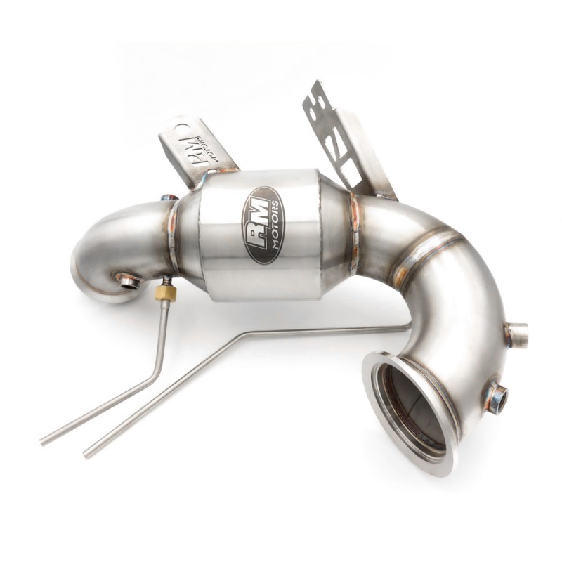 Downpipe MERCEDES AMG CLA 45 S 387, 420PS, 4MATIC, M139 2019- s katalyzátorem EURO6 Průměr trubky - 89 mm Materiál: ušlechtilá ocel T304, X5CrNi18-10, 1.4301, AISI 304, 0H18N9 zesílená konstrukce Každý prvek výrobku je vyroben pomocí CNC technologie. Na výrobek se vztahuje 24měsíční záruka výrobce. dvě připojení lambda sondy M18x1,5 dvě připojení čidla podtlaku připojení čidla teploty OEM čísla... Celý popis
