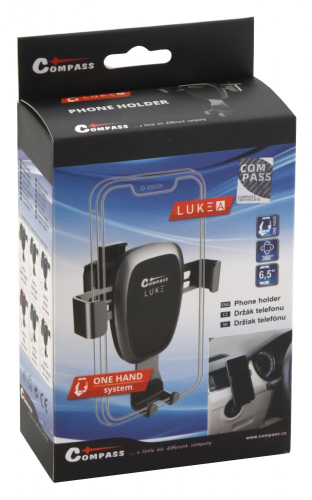 Univerzální držák telefonu řady LUKE pro upevnění do mřížky ventilace a umístěním telefonu jednou rukou. Držák je opatřen gravitačním systémem uchycení telefonu, kdy telefon svojí vahou působí na spodní rameno držáku, díky čemuž se stáhnou boční ramena, která telefon upevní. Tělo držáku je dále opatřeno kloubem s aretačním prstencem, díky kterému je možné držák nastavit pro potřebný sledovací ... Celý popis