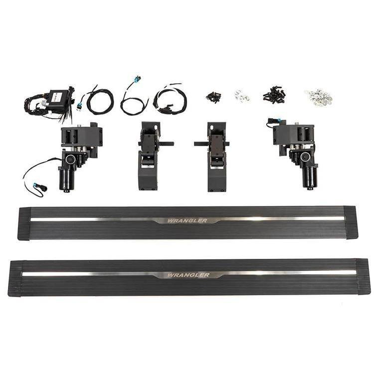 Steps made of aluminiumSteel and aluminium, powder coating bracketsStainless steel pinsEach step is mounted using two mounting pointsNon-slip surfaceCar’s model logo - laser engraved logo on each stepElectronic module with harnessWeight capacity rated at 270 kg per one stepAutomatically open and close with any door that is opened and closedCan stop automatically when having obstaclesNo drilling... Celý popis