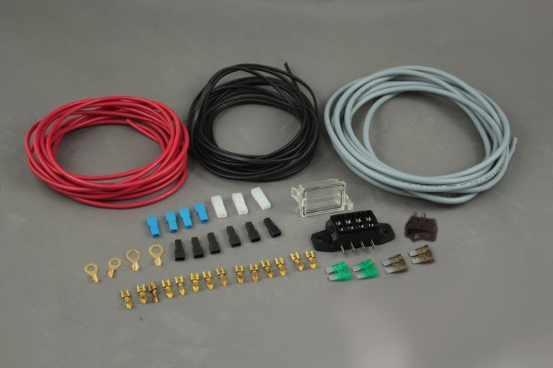 Univerzální elektrické kabely pro sady air-ride Umožňuje připojení kompresoru, ventilů a čidla tlaku. Sada obsahuje : Kabel ke kompresoru +12V (6-žílový)- červený - 5m Kabel od ovládání do ventilu 10-žílový - 5m Černý kabel pro ovládání relé kompresoru a cívek ventilů (2x1,5) - 5m Spojky Pojistková skřín Pojistky 4 kusy Přepínač ON/OFF Celý popis