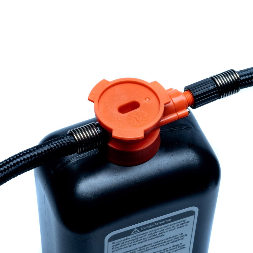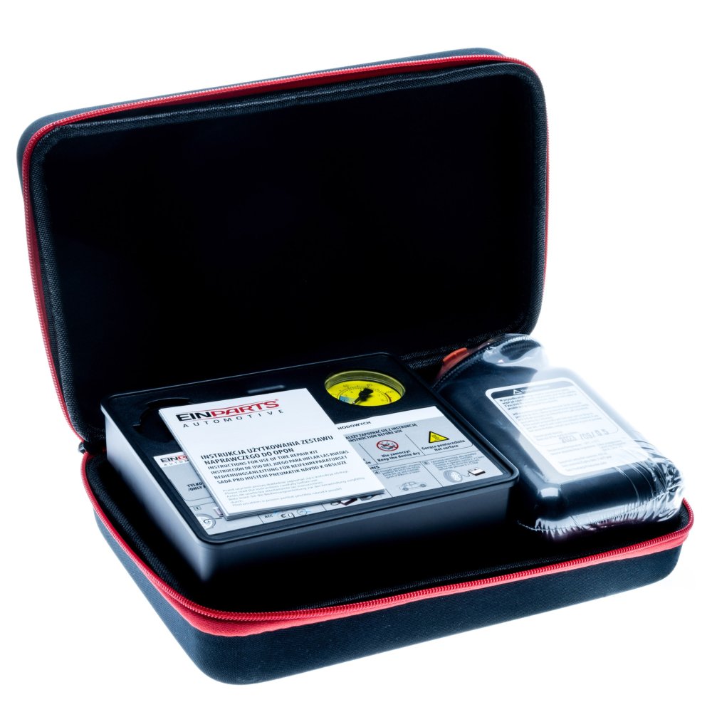 V sadě: - Kompresor 120W - Těsnící tekutina 450ml - Jehla pro nafukování míčů, tryska