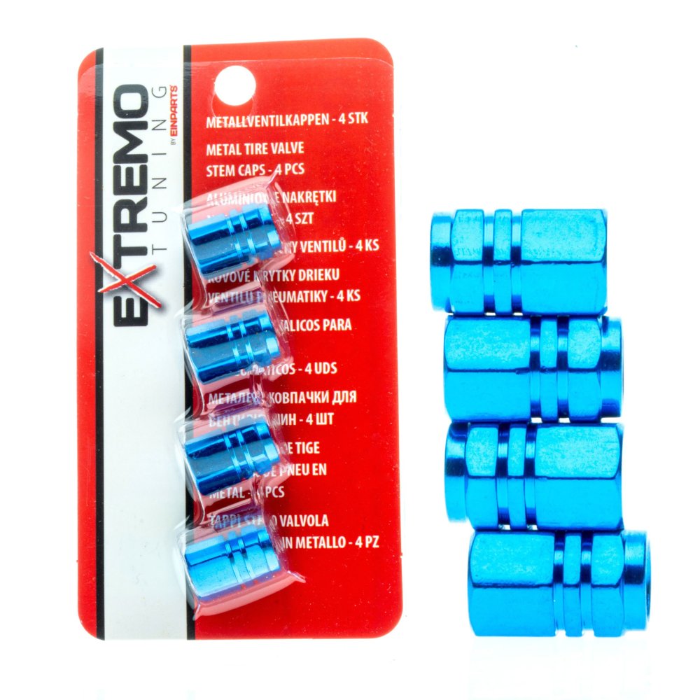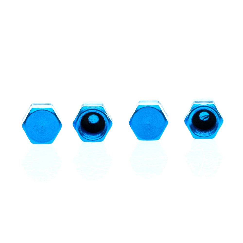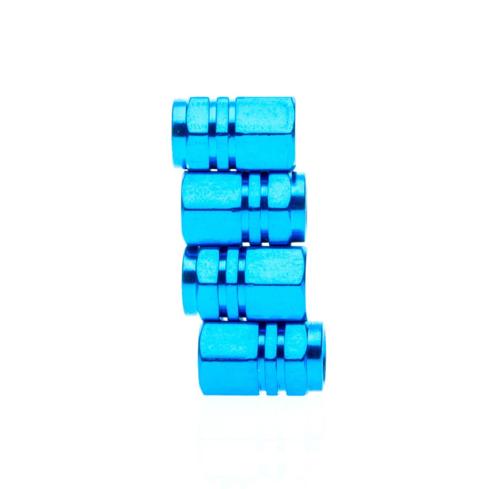 Hliníkové krytky ventilků - Světle modré, sada 4 kusů Elegantní krytky ventilků z vysoce kvalitního eloxovaného hliníku, které zajišťují odolnost a ochranu proti korozi. Šestihranný tvar usnadňuje montáž a demontáž a zároveň dodává vozidlu stylový vzhled. Chrání ventilky před prachem, nečistotami a vlhkostí. Pasuje na: Standardní ventilky Schrader (AV) používané v autech, motocyklech, skútrech ... Celý popis