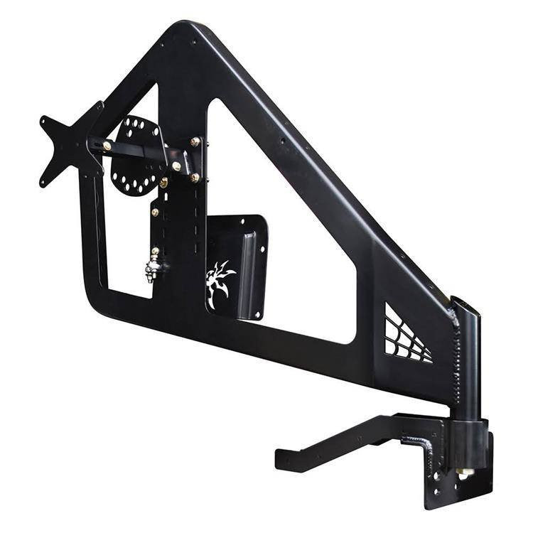 Extremely durable steel constructionFits up to 40" tireMounted to the rear bumpeOpen with tailgate (Single-Action-Opening)Adjustable tire mount Celý popis
