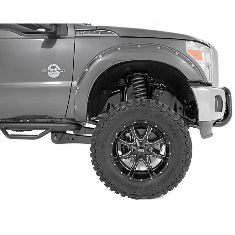 Proudly made in the USATyre coverage: 2" / 5,08 cmFlare height: 6,25" / 15,87 cmSimulated riveted lookQuick and easy install with no drillingAdded protection from rocks, mud and other road debrisUV protected to prevent fadingBuilt from a special Tri-Blend ABS material for maximum strength and durabilityEasily paintable to color match your truckCan be removed to bring truck back to sto... Celý popis