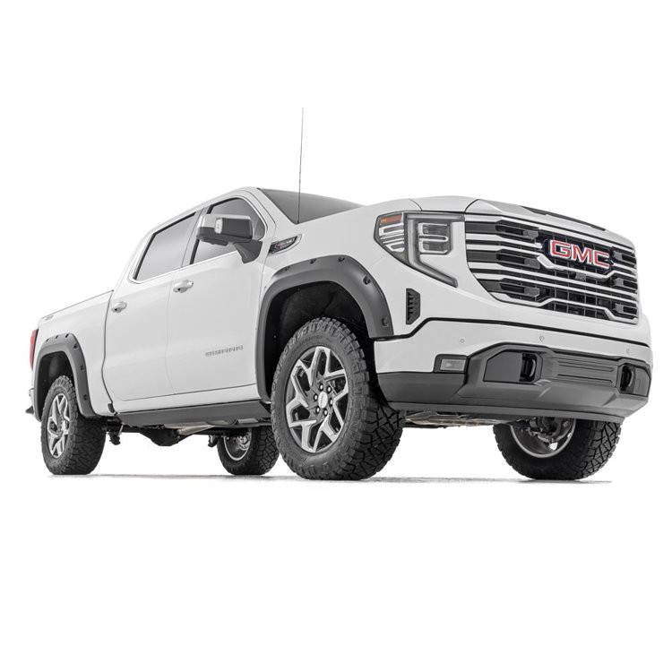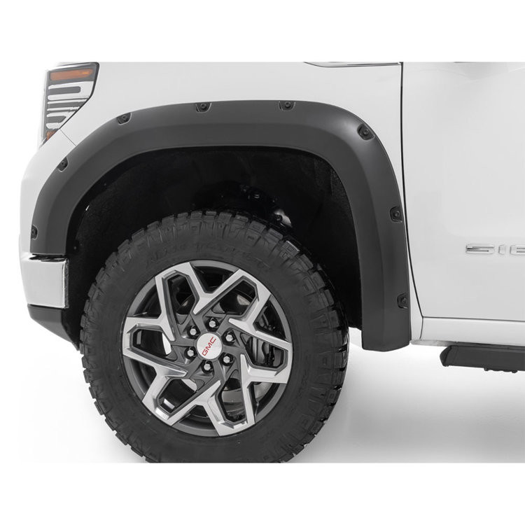 Proudly made in the USAFlat blackTyre coverage: 2" / 5,08 cmFlare height: 6,5" / 16,51 cmSimulated riveted lookQuick and easy install with no drillingAdded protection from rocks, mud and other road debrisUV protected to prevent fadingBuilt from a special Tri-Blend ABS material for maximum strength and durabilityEasily paintable to color match your truckCan be removed to bring truck ba... Celý popis