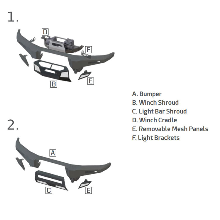 Modular design allowing for personalization Made of 1/8" steel Possibility of installing additional lighting Perfectly fitted to the car Space for a winch Celý popis