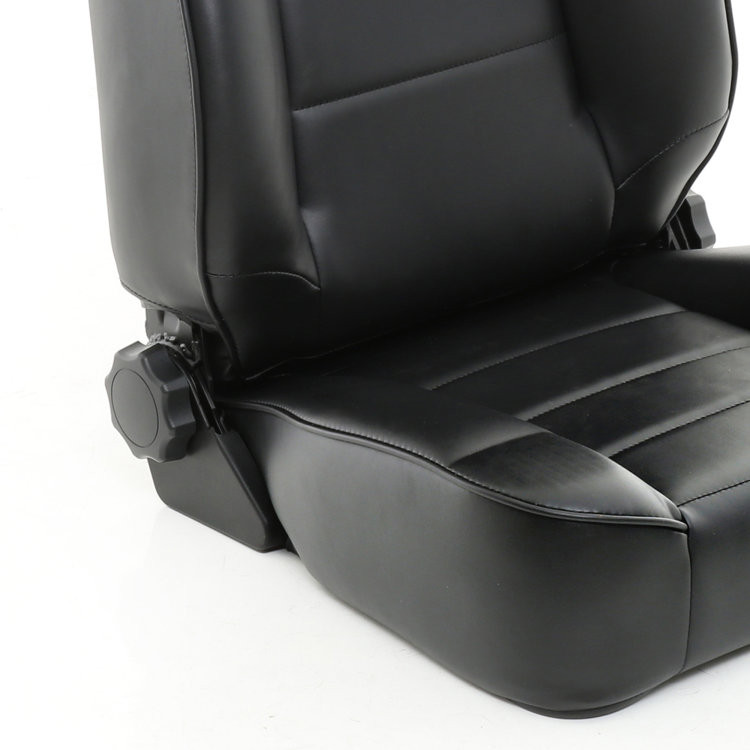 Material: Black Vinyl Dual recliner mechanism to allow seat to function on either driver or passenger side Bolts directly to factory mounts without drilling Welded powder coat painted seat frame will not rust or break Celý popis