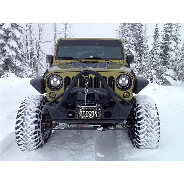 Heavy duty steel construction 5 mm plate steel High clearance design Solid d-ring mounts Bull bar Winch plate Compatible with factory fog lights or others Poison Spyder logo Unpainted Complete hardware Celý popis