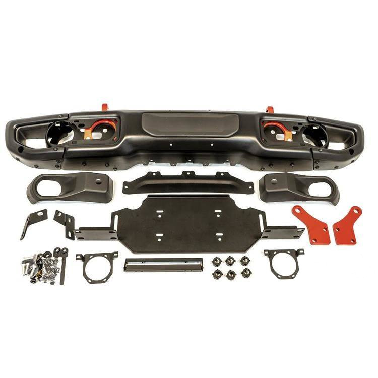 Dedicated bumper with high bull bar for Jeep JL and GladiatorMade from 3 mm steelWinch plate fits in most available winches (winch sold separately)Modular constructionProtects vehicle from on & off-road debrisAggressive lookMounting point for license plateMounting points for park sensors (fits EU vehicles)Adapters to fit factory parking sensorsMounting points for factory fog lightsModern, r... Celý popis