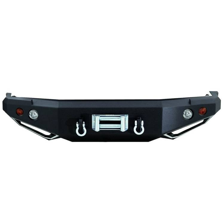 Manufactured from 3/16" cold roll steel1/4" steel mounting platesUltra bright driving and fog lightsSolid mount D-Rings - welds on the inside and out (D-rings sold separately)Solid plate center section that wraps the frame horns and lower cross memberBuilt in winch plate to accommodate up to 16500 lbs / 7,4 t winchOne-piece welded designMatte black finishNo drilling required Celý popis