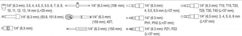 Gola sada 1/4" obsahuje 38ks: nástavce a ráčnu s plastovou rukojetí. Vyrobené z kvalitní oceli s funkcí AS-DRIVE.