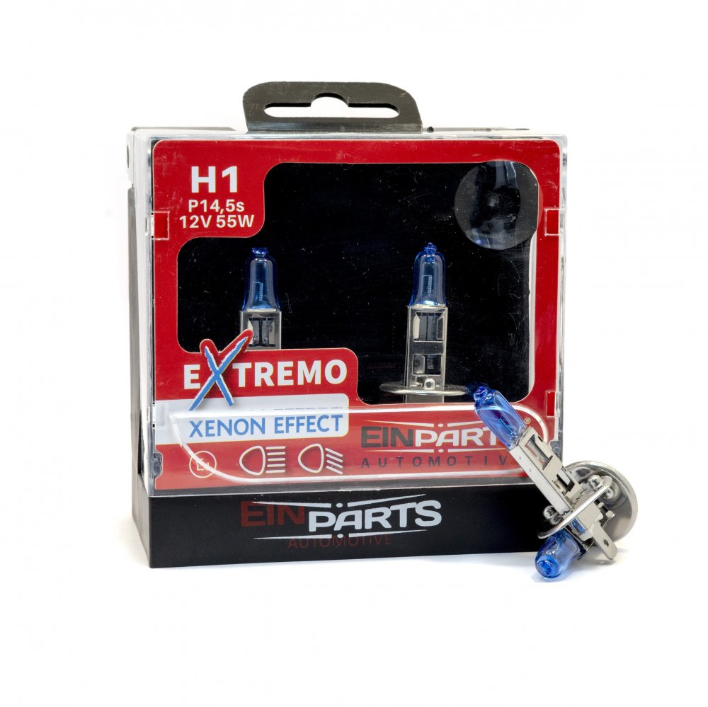 Halogenové žárovky EXTREMO 100% xenon effect Specifikace: Typ žárovky: H1 Jmenovitý výkon: 55 W Homologace: E4 Barva světla: modrá Rozměry: - mm x - mm (délka x šířka) Napájecí napětí: 12 V Obsah sady: 2 x žárovka Celý popis