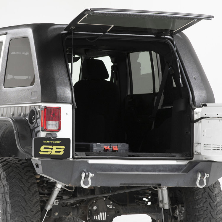 Two-piece design with removable targa top front section for moonroof Rigid, hand-laid, honeycomb fiberglass construction for extra strength and rigidity Better performance through increased departure angles when used with slanted tyre carriers Rear window defroster included Provisions for rear wiper included Better sound protection than stock hard top DOT-approved safety glass with 31% tint Du... Celý popis