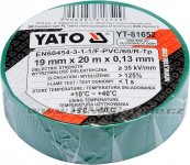 Kvalitní, elektroizolační, pružná, samolepící páska ze směsi PVC a gumy. Páska odolává napětí do 4000V (EN60454). Páska zelené barvy s návinem 20 m, šíře 19 mm s tloušťkou 0,13 mm. Technická data délka 20 m šířka 19 mm tloušťka 0,13 mm materiál PVC, guma izolace 4000 V norma EN60454-3-1-1/F-PVC/60/R-Tp Celý popis