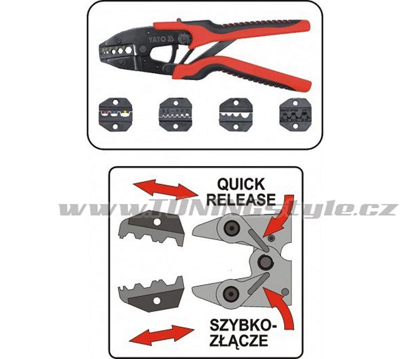 Kleště YT-2245 pro krimpování nejběžnějších typů konektorů, mají zčernalý povrch, který chrání před korozí a dvousložkovými plastovými úchyty na rukojeti. Přesná konstrukce čelistí usnadňuje počáteční zasunutí konektoru a delší než standardní rukojeti a západkový mechanismus jeho přesné a pevné upnutí bez použití velké síly.