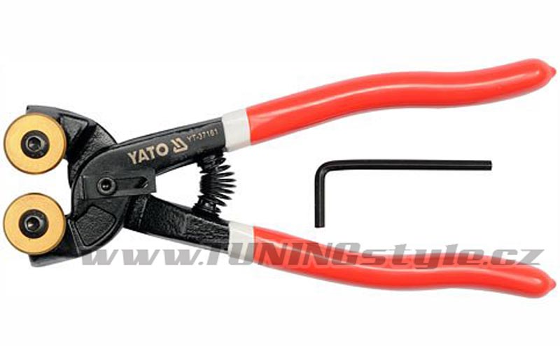 Kvalitní štípací obkladačské kleště s řezacíni diamantovými kolečky pro řezání těch nejtvrdších dlažeb a skla.• Kleště na dlaždice Yato 200mm s řezacími kolečky• Délka 200 mm• Tělo kleští vyrobeno z chromvanadiové oceli• Diamnantová řezací kolečka potažená nitridem titanu• Rukojeti potažené měkčenou gumou délka (mm) 200 materiál karbid YG-6X povrchová úprava TiN Celý popis