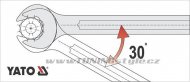 Očkoplochý klíč Yato vyrobený z chromvanadiové slitiny oceli, povrch je částečně satinovaný a leštěný do vysokého lesku. AS-Drive je vylepšený profil u nástrčných a očkových klíčů, v tomto případě očka.