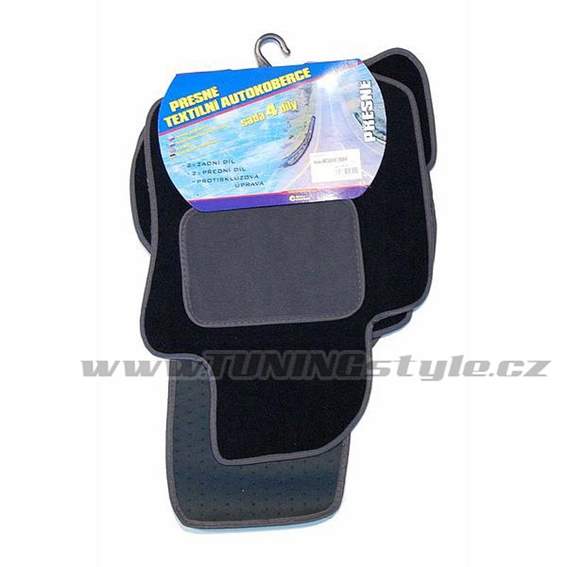 Přesné textilní autokoberce pro Škoda Octavia II., rok výroby od 2004. Sada 4 kusy (2x přední, 2x zadní díl). Provedení černé s šedým lemem a šedým zesílením koberce řidiče pod pedály.