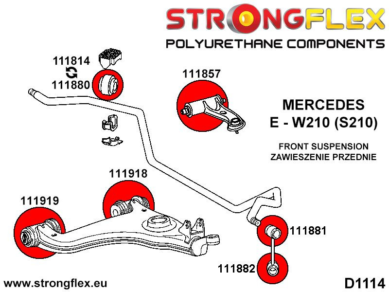 Na modely E W210 jsou dva typy silentbloků předního stabilizátoru 11814 a 11880, viz obrázek S1100