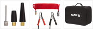 Výkonný kompresor s přesným manometrem a napájením na 12V - 13,8V. Určeno pro nafukování kol vybavených ventilem v automobilech, motocyklech a jízdních kolech a - s použitím výměnných špiček - matrace, pontony, míče.