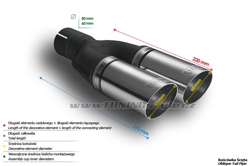 Koncovka výfuku dvojitá tenká šikmá ULTER SPORT 60mm