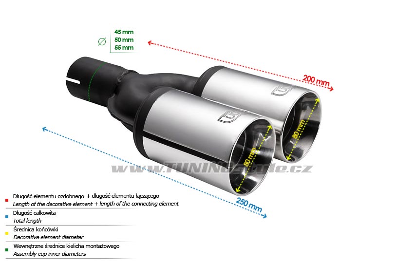 • rozměr koncovky ø80mm, délka: 200mm