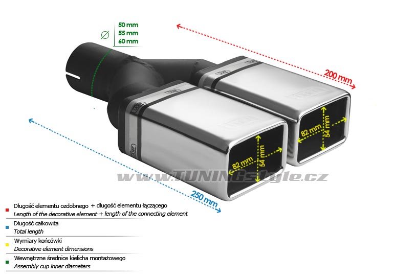 »  Výfukový systém  »  Koncovky  »  Koncovka výfuku dvojitá ULTER SPORT 82x54mm