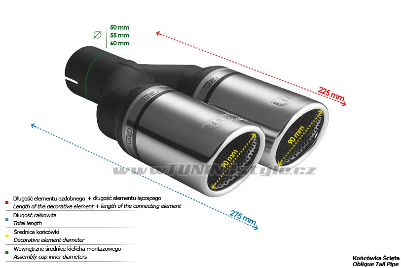 Sportovní nerezová koncovka ULTER SPORT Skvělý vzhled a špičková kvalita Rozměry: rozměr koncovky ø90mm, délka: 220mm dostupné připojovací rozměry: 45/50/55/60mm (při objednávce uveďte požadovaný připojovací rozměr v poznámce) Koncovky z leštěné nerezové oceli. Snadná montáž pásovou svorkou (není součástí) Kvalita a dlouhá životnost – garantuje certifikát kvali... Celý popis