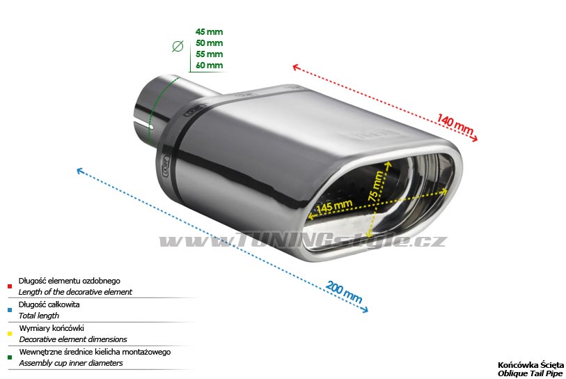 • rozměr koncovky ovál 145x75mm, délka: 140mm