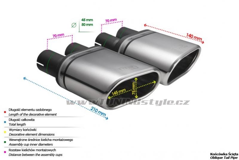 • rozměr koncovky 145x75mm, délka: 140 mm