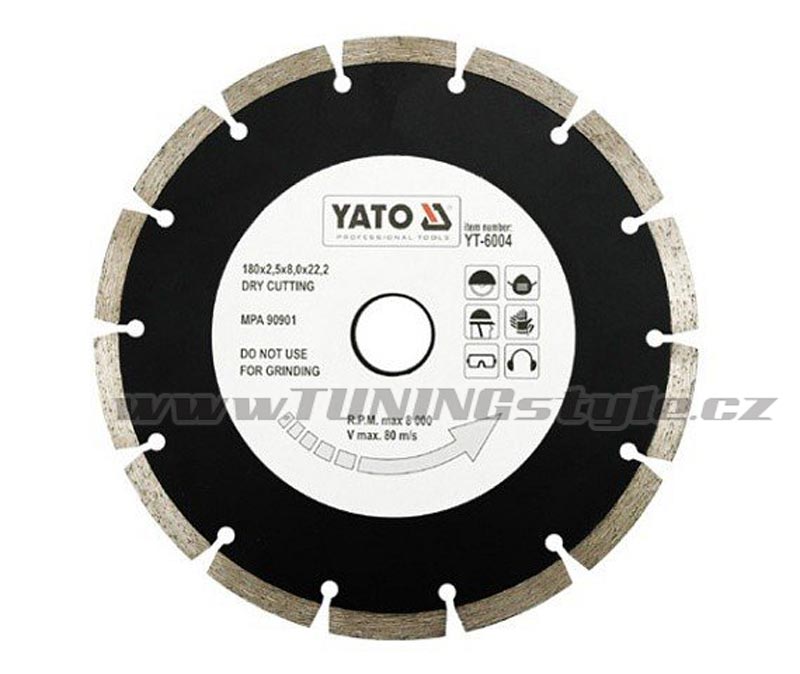 Kotouč diamantový pro suché řezání s použitím na beton, dlažbu, zdivo a kámen. Technická data průměr 180 mm otvor 22,2 mm max. ot./min 8 000 šířka 2,5 mm Celý popis