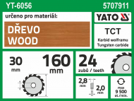 Univerzální pilový kotouč pro příčné i podélné řezání dřeva, dřevovláknitých desek a plastů.Jednotlivé zuby kotouče jsou vybaveny plátky ze slinutého karbidu (SK plátky), které nabízí vysokou kvalitu řezu a dlouhou životnost naostřeného břitu. Technická dataprůměr kotouče160 mmprůměr otvoru30 mmpočet zubů24šíře řezu2,8 mmšíře kotouče2 mmmax. povolené otáčky9 500 / min. Celý popis