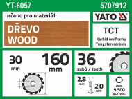 Univerzální pilový kotouč pro příčné i podélné řezání dřeva, dřevovláknitých desek a plastů.Jednotlivé zuby kotouče jsou vybaveny plátky ze slinutého karbidu (SK plátky), které nabízí vysokou kvalitu řezu a dlouhou životnost naostřeného břitu. Technická dataprůměr kotouče160 mmprůměr otvoru30 mmpočet zubů36šíře řezu2,8 mmšíře kotouče2 mmmax. povolené otáčky9 500 / min. Celý popis