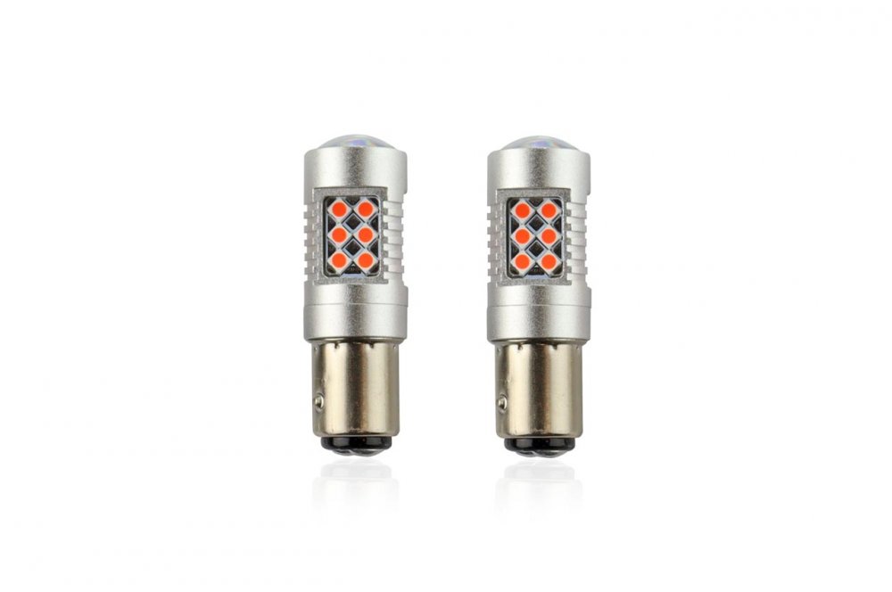 Parametry: Rozměr: 56/18mm (dlouhá / šířka) Barva: 5600 K LED dioda: 24x 3030 Spotřeba energie: 6,3/1,7 W Napětí: 12/24 V Typ rozhraní: 1157 (P21W/5W) Lumens: 800lm Celý popis