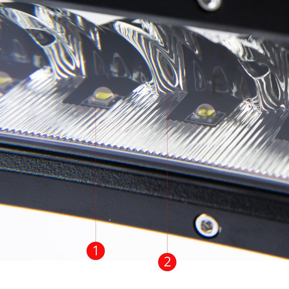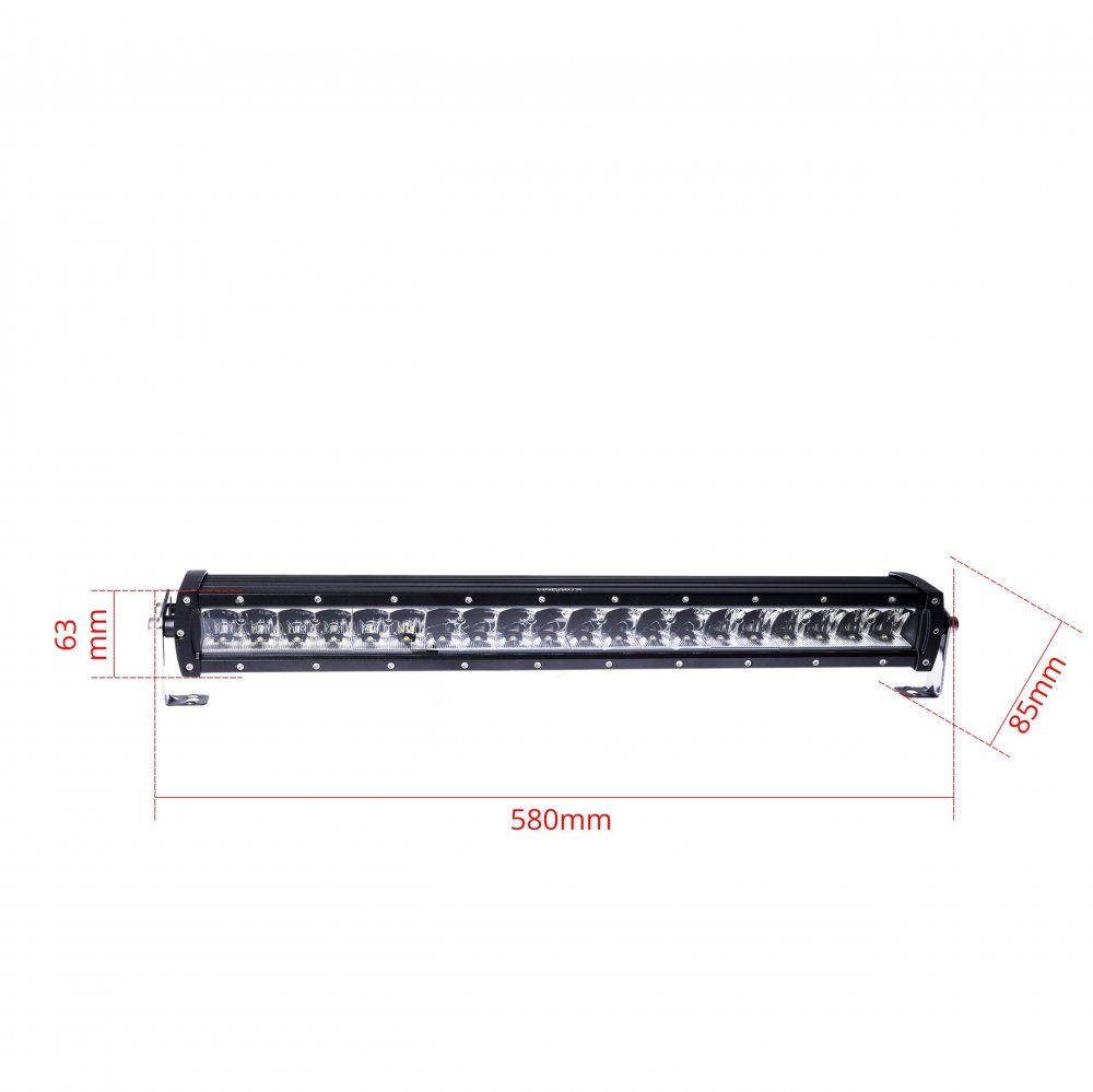 LED Dálkové světlo 200W (20 x 10W) CREE 30/60° Specifikace: Maximální výkon: 200 W Druh LED diod: CREE Svítivost: 27000 lm Počet diod: 20 x 10 W Vyzařovací úhel: 30/60° (hybridní světlo - krajní LEDky s tvarově odlišným odrážecím pro rozptyl světla 60°) Barva světla: 6000K (studená bílá) Rozměry: 580 mm x 63 mm x 85 mm (délka x šířka x hloubka) Homologace: Ano, ECE R112 pro dálková světla Prac... Celý popis