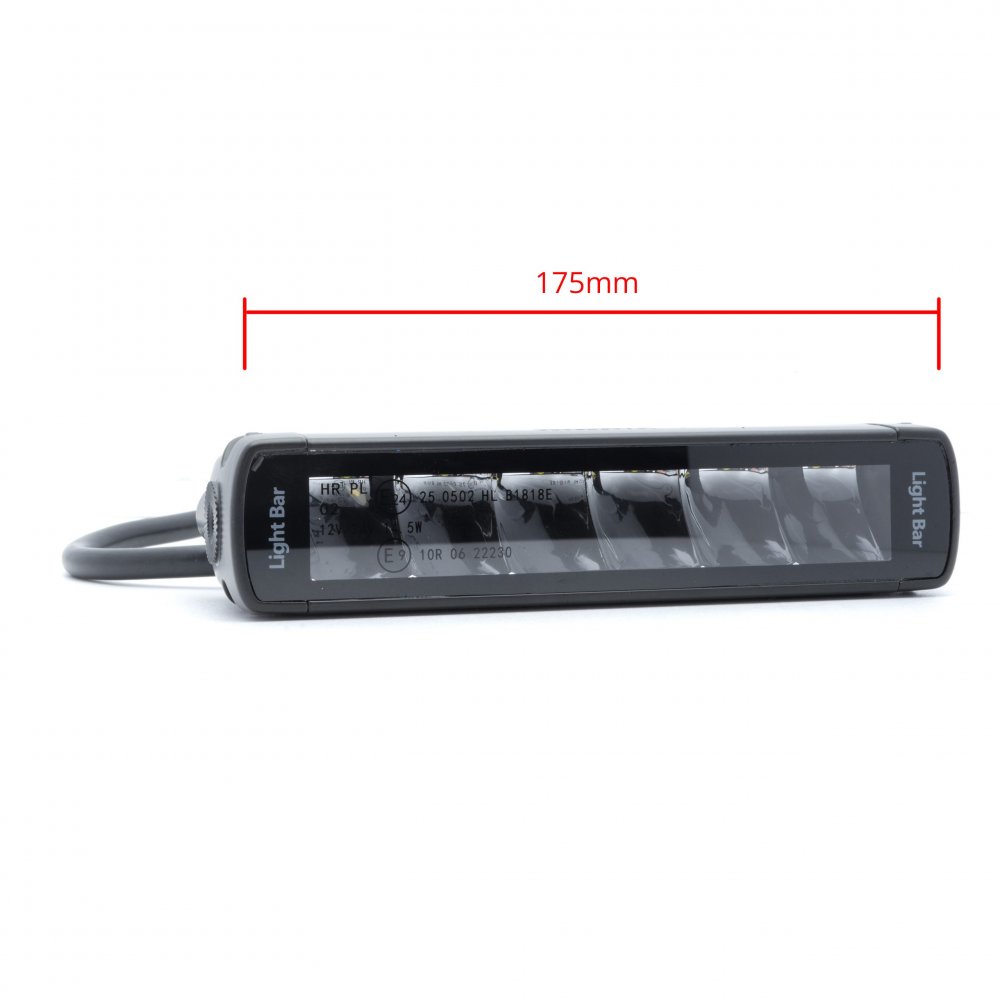 Maximální výkon: 30W Druh LED diod: OSRAM Svítivost: 3600 lm Počet diod: 6 x 5W Vyzařovací úhel: 30/60° (hybridní světlo - krajní LEDky s tvarově odlišným odrážecím pro rozptyl světla 60°) Barva světla: 6000K (studená bílá) Rozměry: 175 mm x 53 mm x 41 mm (délka x šířka x hloubka) Homologace: Ano, ECE R112 pro dálková světla Pracovní teploty: -40 °C až +50 °C Napájecí napětí: 9 - 32 V Doplňkové informace: - světlo odolné proti dešti (typ ochrany IP67) - hliníkový kryt (unikátní struktura žebrování výborně odvádí teplo) - doba životnosti přes 30.000 hodin OE čísla: - Obsah sady: LED dálkové světlo