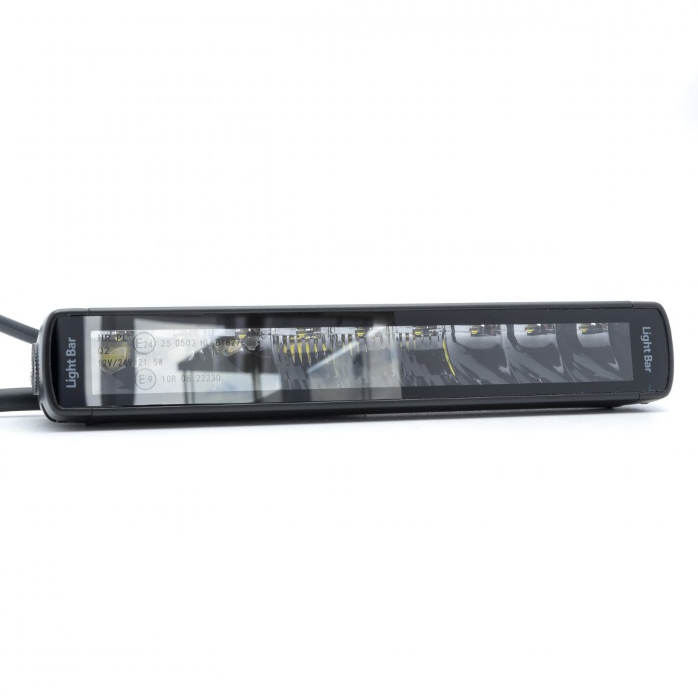 LED Dálkové světlo 45W (9 x 5W OSRAM LED) 30/60° Specifikace: Maximální výkon: 45W Druh LED diod: OSRAM Svítivost: 5400 lm Počet diod: 9 x 5W Vyzařovací úhel: 30/60° (hybridní světlo - krajní LEDky s tvarově odlišným odrážecím pro rozptyl světla 60°) Barva světla: 6000K (studená bílá) Rozměry: 245 mm x 53 mm x 41 mm (délka x šířka x hloubka) Homologace: Ano, ECE R112 pro dálková světla Pracovn... Celý popis