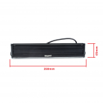 Maximální výkon: 56W Druh LED diod: CREE Svítivost: 7560 lm Počet diod: 8 x 7W Vyzařovací úhel: 30/60° (hybridní světlo - krajní LEDky s tvarově odlišným odrážecím pro rozptyl světla 60°) Barva světla: 6000K (studená bílá) Rozměry: 350 mm x 40 mm x 65 mm (délka x šířka x hloubka) Homologace: Ano, ECE R112 pro dálková světla Pracovní teploty: -40 °C až +50 °C Napájecí napětí: 9 - 32 V Doplňkové informace: - světlo odolné proti dešti (typ ochrany IP67) - hliníkový kryt (unikátní struktura žebrování výborně odvádí teplo) - doba životnosti přes 30.000 hodin OE čísla: - Obsah sady: LED dálkové světlo