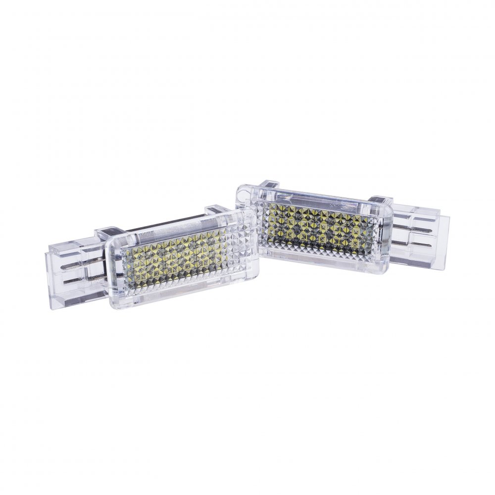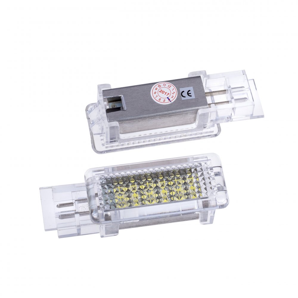 LED osvětlení interiéru MERCEDES C W203 (2000-2007) MERCEDES CLK W209 (2002-2009) MERCEDES SLK R171 (2004-2011) MERCEDES SLR (2003-2009) MERCEDES Viano W639 (2004-2014) MAYBACH 57 W240 4-dveřový (2002-2013) Specifikace: Maximální výkon: 2 x 1,8W (18 diod x 0,1W v každé lampičce) Druh LED diod: SMD Barva světla: 6000K (studená bílá) Rozměry: 50 mm x 23 mm x 18 mm (délka x šířka x hloubka) Požado... Celý popis