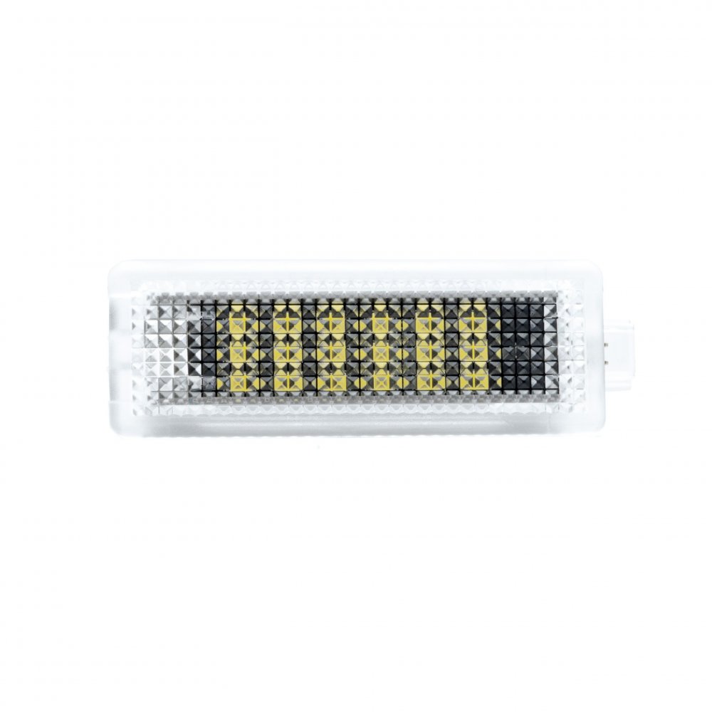 LED osvětlení kufru Ford Focus 2012 - 2018 Ford C-Max 2013 - 2018 Specifikace: Maximální výkon: 1 x 1,8W (18 diod x 0,1W v každé lampičce) Druh LED diod: SMD Barva světla: 6000K (studená bílá) Rozměry: 69 mm x 25 mm x 17 mm (délka x šířka x hloubka) Požadované kusy: 1 kus (=1 sada) Pracovní teploty: -40 °C až +50 °C OE Čísla: - Obsah sady: 1 x panel LED Celý popis