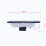 LED osvětlení státní poznávací značky (SPZ) FIAT Ducato box/bus (2006-2020) CITROEN Jumper box/bus (2006-2020) PEUGEOT Boxer box/bus (2006-2020) Specifikace: Maximální výkon: 2 x 1,8W (18 diod x 0,1W v každé lampičce) Druh LED diod: SMD Barva světla: 6000K (studená bílá) Rozměry: 73 mm x 27 mm x 23 mm (délka x šířka x hloubka) Homologace: E4 (vyražena na každé lampičce) Kompatibilita CAN-BUS: A... Celý popis