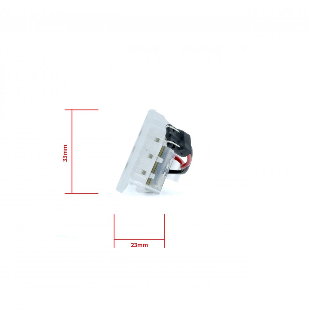 2 x 1,8W (18 diod x 0,1W v každé lampičce) Druh LED diod: SMD Barva světla: 6000K (studená bílá) Rozměry: 99 mm x 33 mm x 23 mm (délka x šířka x hloubka) Homologace: E4 (vyražena na každé lampičce) Kompatibilita CAN-BUS: