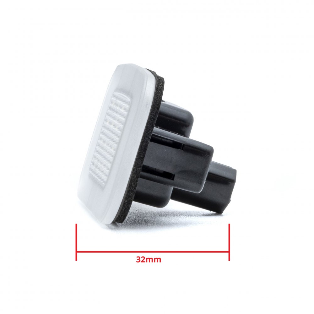 LED osvětlení státní poznávací značky (SPZ) Lexus RC 200t/300/350 (2015-) Lexus RC F 2015 - 2019 Lexus RC Turbo 2017 - Lexus GS 200t/300/350/350h/450h 2014-2019 Lexus IS 200t/250/300/350/Turbo/200t 2014-2019 Lexus GS F 2016 - 2019 Lexus GS Turbo 2017 Specifikace: Maximální výkon: 2 x 1,8W (18 diod x 0,1W v každé lampičce) Druh LED diod: SMD Barva světla: 6000K (studená bílá) Rozměry: 71 mm x 37... Celý popis