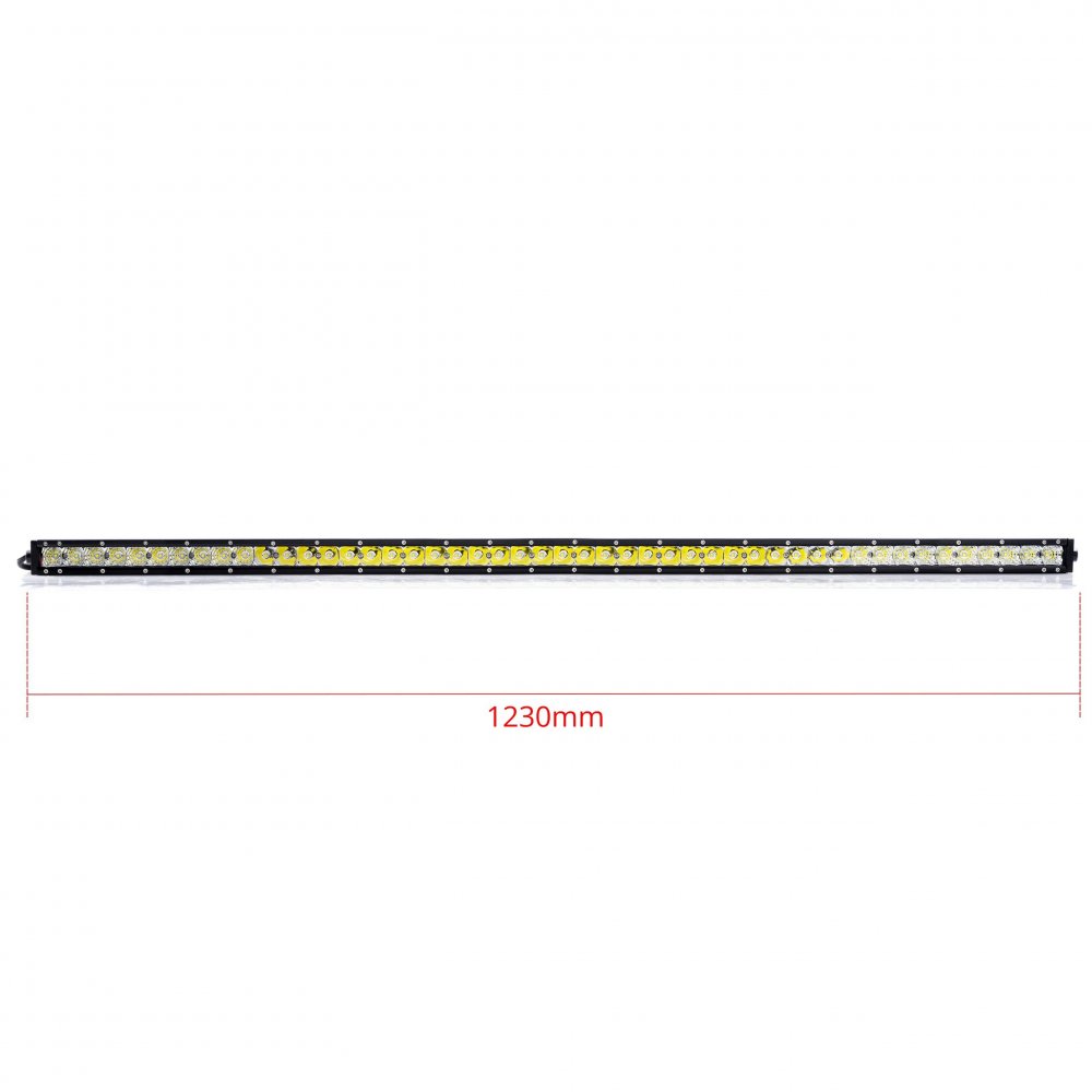 LED Pracovní světlo 240W (48 x 5W) CREE 30/60° Specifikace: Maximální výkon: 240W Druh LED diod: CREE Svítivost: - lm Počet diod: 48 x 5W Vyzařovací úhel: 30/60° (hybridní světlo - krajní LEDky s tvarově odlišným odrážecím pro rozptyl světla 60°) Barva světla: 6000K (studená bílá) Rozměry: 1230 mm x 41,6 mm x 82 mm (délka x šířka x hloubka) Homologace: Ne* Pracovní teploty: -40 °C až +50 °C Nap... Celý popis