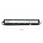 Maximální výkon: 60W Druh LED diod: CREE Svítivost: - lm Počet diod: 12 x 5W Vyzařovací úhel: 30/60° (hybridní světlo - krajní LEDky s tvarově odlišným odrážecím pro rozptyl světla 60°) Barva světla: 6000K (studená bílá) Rozměry: 330 mm x 41,6 mm x 82 mm (délka x šířka x hloubka) Homologace: Ne* Pracovní teploty: -40 °C až +50 °C Napájecí napětí: 9 - 32 V Doplňkové informace: - světlo odolné proti dešti (typ ochrany IP67) - hliníkový kryt (unikátní struktura žebrování výborně odvádí teplo) - doba životnosti přes 30.000 hodin Obsah sady: LED pracovní světlo Montážní sada (závěsník, šrouby, matice)